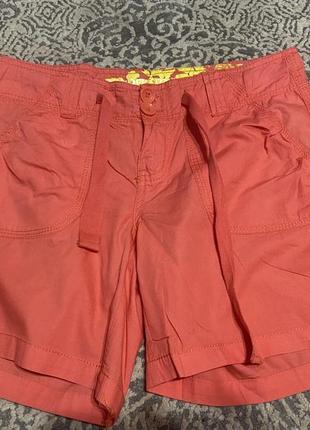 Тканина натуральна, колір кораловий Є кишені По пояс -42 см Пос -48 см Посадка -21/35 см По ширина штанини-31 см Довжина -40 см Не тягнеться #11/|||