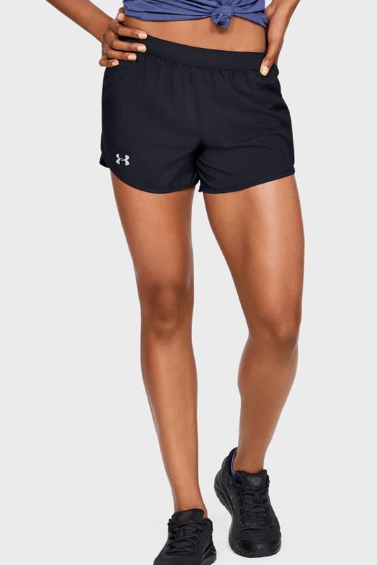Жіночі чорні шорти UA Fly By 2.0 Short-BLK Легка тканина забезпечує чудовий комфорт і довговічність. Матеріал відводить піт і дуже швидко сохне.Сверхдихаючі сітчасті вставки відводять надлишки тепла. Вбудовані труси для комфорту. Ультра-зручний пояс з м'якою в'язки з внутрішнім шнурком.