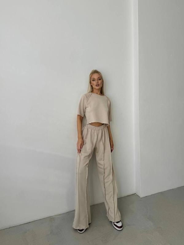 Нереально крутой и стильный костюм, штаны палаццо и укороченная футболка 🔝 ▫️Размер : 42-44; 46-48. ▫️Цвет: беж и графит ▫️Ткань: Турецкая петля ☝🏼Важно ткань из высокачестного хлопка 85% - 15 полиэстр❗️ ▪️Цена : 1130 грн