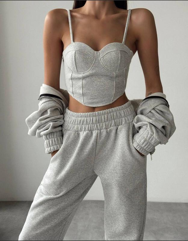 Хит продаж😍 Костюм 3-ка (штани, кофта,топ) Мод.472 Цвета: меланж, черный Размеры: 42-44, 46-48 Тканина: двонитка Цена: 800 грн Комфортный и максимально стильный костюм🖤 Худи oversize на молнии и свободные брюки, выглядят очень стильно😉 Топ с чашками😍