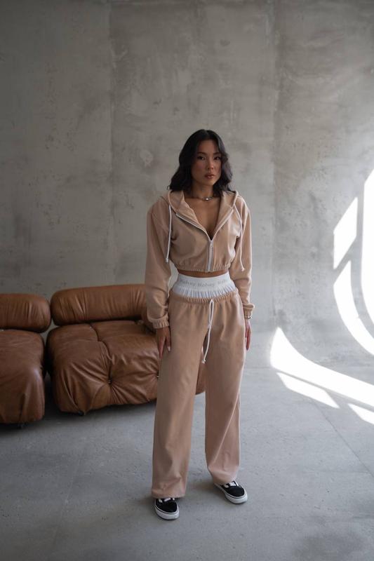 Костюм двойка брюки с имитацией шорт и укороченная худи петля велюр плюш