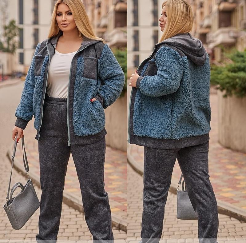 Ниже есть замеры изделия и описание модели - вся информация есть в описании = то есть ниже есть детальное описание: Фабричное качество💫 Трендовый теплый стильный костюм-двойка выполнен из теплой турецкой ткани premium качества, которая не скатывается при правильных условиях стирки и идеально держит форму. 🔹Бомбер-кофта: ✓ Крой свободный. ✓ Капюшон вшитый. ✓ Застежка на молнию. ✓ Карманы накладные. 🔹Штаны: ✓ Посадка высокая. ✓ С резинкой в талии ✓ Карманы боковые в швах. ✅ Ткань: трикотаж трехнитка на флисе производства Турции в комбинации с Тедди. ✅Ткань premium качества, не кошлатиться, не теряет цвет, не растягивается. ✅Утепленный 🌈Color: Бежевый, Серый, Черный 📐Замеры по готовому изделию: 📐Кофта: 50-52 р-р: длина изделия: 68см, обхват рукава 40см, длина рукава от горловины 74см, длина рукава от плечевого шва 61см, ОГ - 110см, ОТ - 110см, ОБ - 108см. 54-56 р-р: длина изделия: 71см, обхват рукава 42см, длина рукава от горловины 76см, длина рукава от плечевого шва 61см, ОГ - 118см, ОТ - 118см, ОБ - 114см. 58-60 р-р: длина изделия: 73см, обхват рукава 46см, длина рукава от горловины 78см, длина рукава от плечевого шва 61см, ОГ - 124см, ОТ - 124см, ОБ - 120см. 62-64 р-р: длина изделия: 73см, обхват рукава 48см, длина рукава от горловины 78см, длина рукава от плечевого шва 61см, ОГ - 134см, ОТ - 134см, ОБ - 130см. 📐Брюки: 50-52 р-р: длина штани по внутреннему шву 81см, длина штани по внешнему шву с учетом пояса 110см, ОТ - 82-110см, ОБ -114см. 54-56 р-р: длина штани по внутреннему шву 81см, длина штани по внешнему шву с учетом пояса 111см, ОТ - 88-116см, ОБ -122см. 58-60 р-р: длина штани по внутреннему шву 83см, длина штани по внешнему шву с учетом пояса 113см, ОТ - 96-126см, ОБ -130см. 62-64 р-р: длина штани по внутреннему шву 83см, длина штани по внешнему шву с учетом пояса 115см, ОТ - 106-136см, ОБ -138см. *Растяжимость: средняя (2-4см) *Замеры могут отличаться от указанных на +-2см в зависимости от особенностей ткани, техническим особенностям пошива, степенью усадки ткани. *На модели изделие в размере 54/56. ✅Рекомендации по уходу: деликатная стирка при температуре не более 30 градусов *Обратите внимание, в зависимости от партии фурнитура в изделии может меняться *В зависимости от цветопередачи Вашего монитора, оттенок изделия может немного отличаться 💎 Фабричное производство, официальная торговая марка 💎 Наложенный платеж с предоплатой 💎 Отправка заказа по Украине Новой Почтой 💎 Возврат / Обмен согласно Закону Украины "О защите прав потребителя"