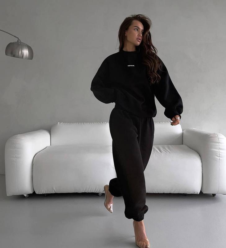 🌈3! шикарный теплый спортивный костюм на флисе флис флисе женский черный джоггеры кофта