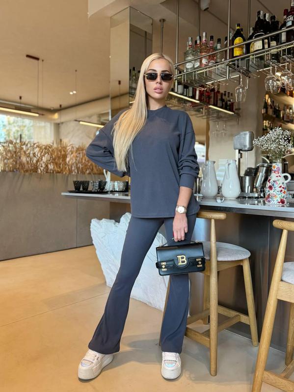 Фото и видео - реал Мод 1002 Костюм (свитшот+брюки клеш) Ткань рубчик теплый Размеры 1(42-46), 2(48-50) Наша нереально крутая новинка, костюм, который не оставит безразличным никого. Ткань такая приятная на ощупь, что вы не захотите ее снимать. При этом ткань очень мягкая и тянется, в нем будет очень комфортно и красиво гулять по городу или ходить возле кино или кафе. ✅