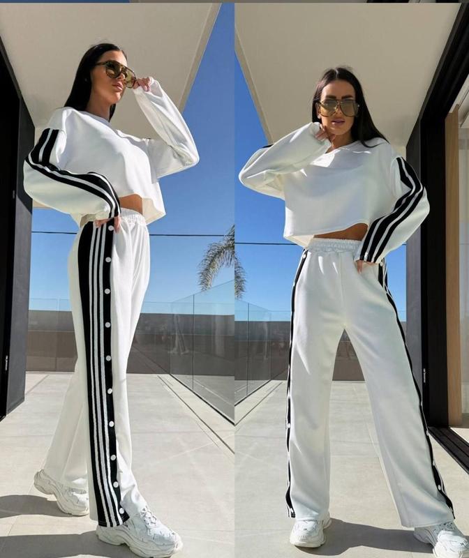 Костюм спортивный женский на лампасах оверсайз свитшот брюки свободного кроя на высокой по...