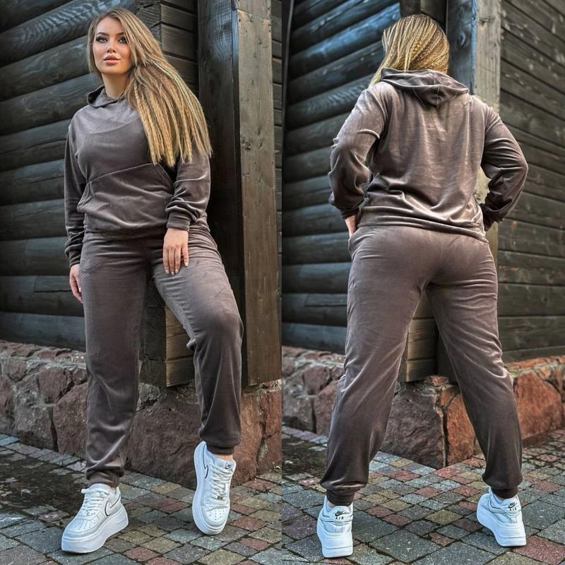 2601254 Размеры: 46-48,50-52,54-56 Тканина: велюр Кольори: хаки, джинс, черный,бордо,лаванда,мокко, Кофта, спущенный рукав на манжете, карман кенгуру Параметри кофти: 46-48: ог: 108 см, длина кофты: 65 см, длина рукава от горловины: 76 см 50-52; ог: 116 см, длина кофты: 66 см, длина рукава от горловины:77см 54-56; ог: 124 см, длина кофты: 68 см, длина рукава от горловины: 78 см Брюки с высокой посадкой, пояс резинка, карманы, низ на манжете (резинка) Параметры брюк: 46-48; ос: 112 см, длина по внутреннему/внешний шву: 75/102см 50-52, ос: 120 см, длина по внутреннему/внешний шву: 75/103см 54-56 ос: 128 см, длина по внутреннему/внешний шву: 75/104см Ткань хорошо тянется! все размеры в наличии!