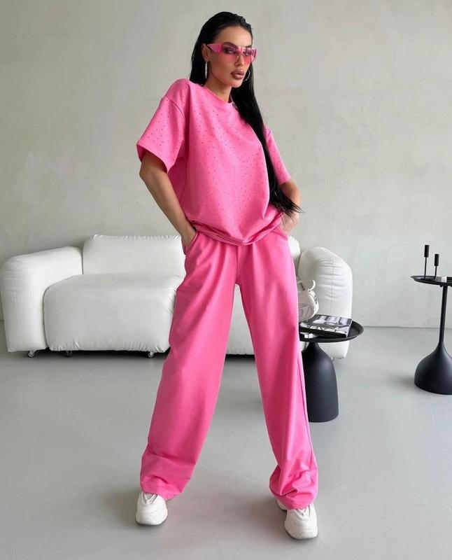 арт. pp. 021 Размеры: 42-46, 48-52 Ткань: вискоза Цвета: черный, белый, графит, малина Футболка принтована блестящими камнями, качество топ!
