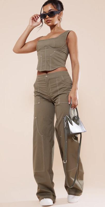Фінальна знижка‼️ Круті штани в кольорі хакі з контрастними нитками. Стан новий, але без бірок (сток). Розмір 14/Л Заміри: ОТ 86 см ОБ 114см Довжина 112 см
