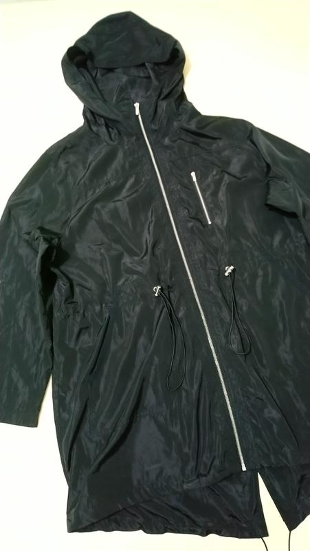 Парка-дождевик с капюшоном большой размер цвет чёрный карманы по талии вставлен регулирующий шнурок без подкладка лёгкая тонкая не пропускает влагу ПОГ 70-71 ПЛЕЧИ 48,5 РУК 65 БЕДРА 75 ДЛИНА 96