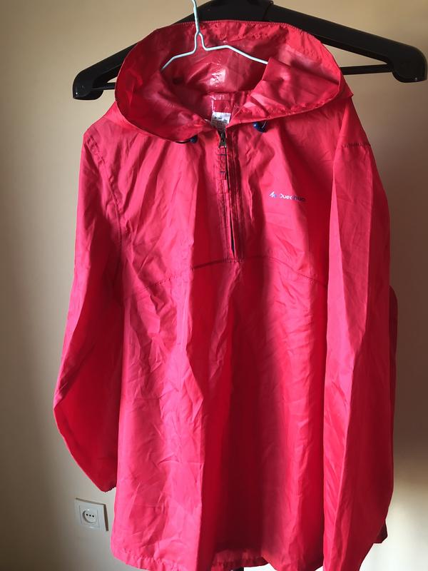 Надевается через голову. Просилоконечная ткань изнутри. Складывается в формируемую сумочку из кармана. На бирке размер М, но подойдет и на больший