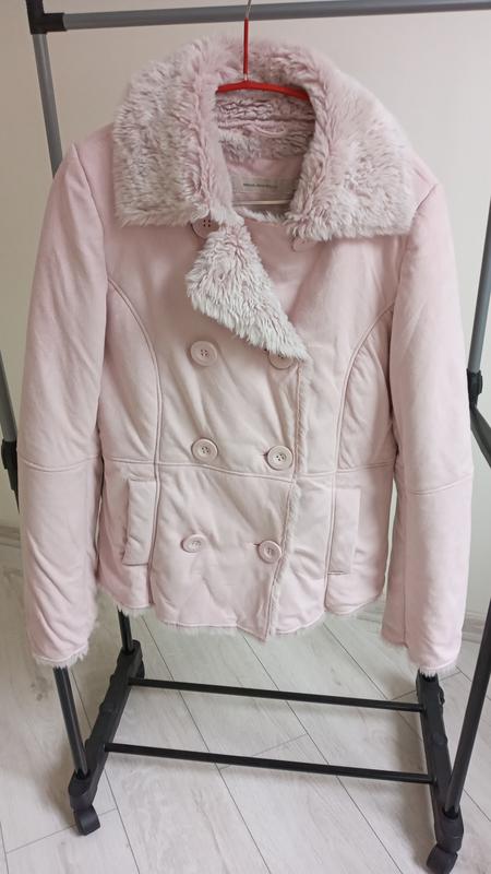 Стильна ніжна дублянка зі штучного матеріалу,шп 40,пог 50,пот 45,шн 53,др 64,довжина дублянки 60,є недолік,невеличкий розріз на рукаві.