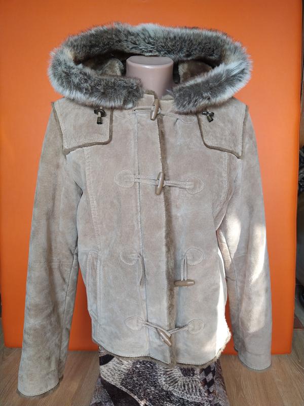 довжина виробу по спинці 62 плечі 43 довжина рукава 61 під руками 55 є дві не глибокі кишені є маленька пляма( не критично) натуральна, хутро штучне