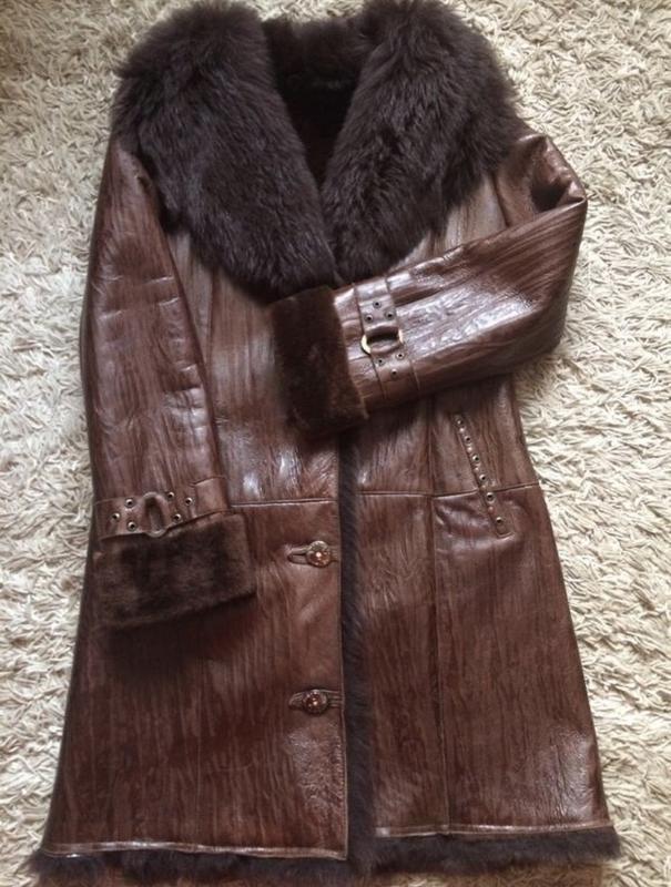 Колір - коричневий. Зверху покриття, яке захищає від вологи і опадів, запобігає появі не бажаних плям. Хутро на комірі - альпака. Розмір 48. Довжина за коліно, на середній зріст. Є пояс. Одягалася декілька разів Напівобхват по грудям 52 см. Напівобхват під руками 56 см. Напівобхват по стегнам 56 см. Напівобхват по низу 66 см. Довжина від плеча до низу 97 см. Плече 12.5 см. Рукав - 65 см по зовнішній стороні Рукав - 46 см, по внутрішньому шву