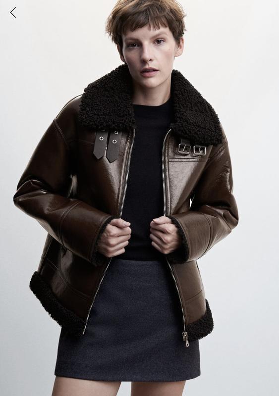 Дубленка Mango, коричневая с черным