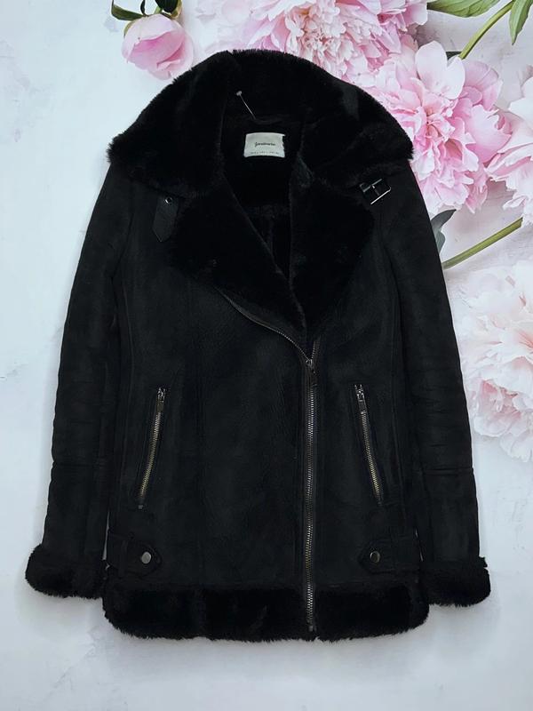 Замшевая Дублёнка Спереди есть карманы Мягкий ворот поднимается и фиксируется замком Дублёнка качественная и плотная, в ней будет тепло уютно в лютую погоду. Удлиненная модель Состояние идеал 🏷️Stradivarius 🔹Размер S Длина 72. ПОГ 49. Рукав 64. Плечо 11. Плечи 41 🔹Размер L Длина 70. ПОГ 56. Рукав 63. Плечо 11. Плечи 42