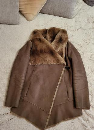 Стильна дубляночка pull&bear, екозамша. Розмір S. Приємного кавового кольору.На холодну осінь, теплу зиму.Гарно носиться.Сліди носки видно тільки по загинах на рукавах. В гарному стані, без нюансів. Чудово переться в машинці. Не линяє, не облазить хутро.