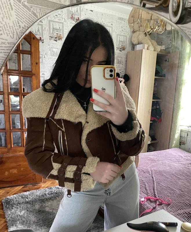 Короткая дубленка, очень стильный, натуральный хлопок, удлиненный рукав, 48 размер) xs, s - оверсайз