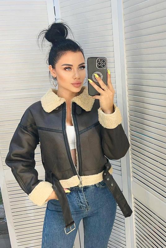 🤩В наличии🤩 Модель 265 Укорочена оверсайз дублянка ❣️ Цвет: темно-коричневый Материал: эко кожа + эко мех под овчину. 2 кармана на молнии, ремень снимается. Размеры: S, M, L Сезон: весна/осень.