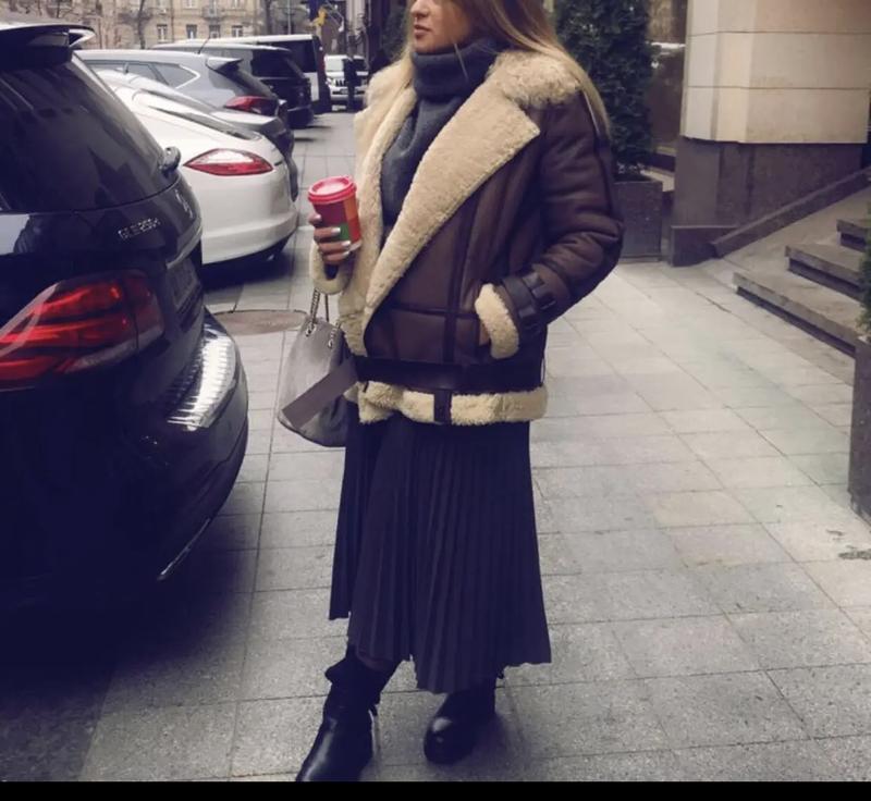 Очень теплая натуральная Дубленка. Воротник из натурального меха