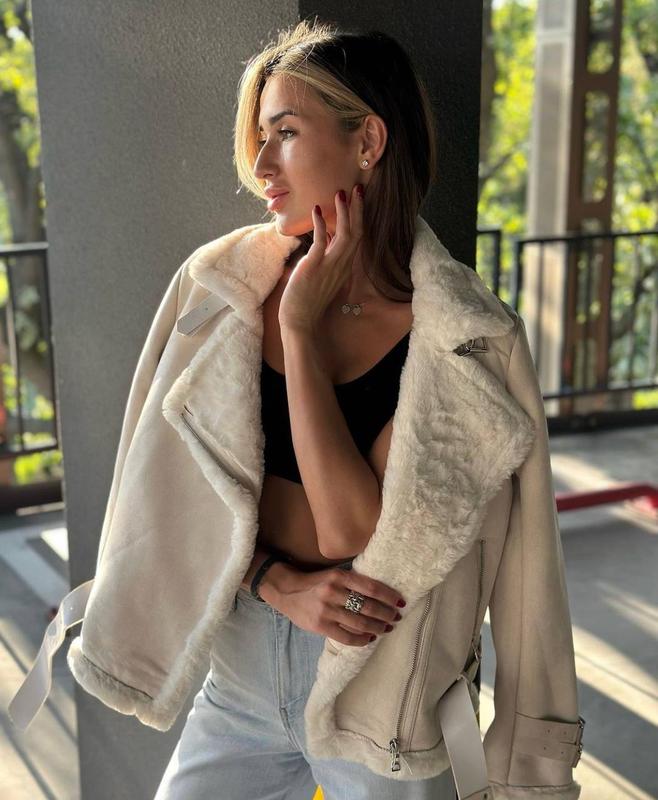 Дубленка с густым теплым мехом кроля😻 Тренд этого сезона🔝 Мод: 2257 Цвет: черный, кремовый Размер: с, м, л Тканина: замш, штучне хутро Цена 1500 грн