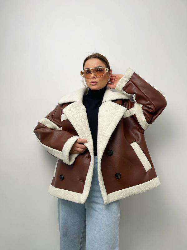Дубленка Эко-кожа, искусственный мех под овчину от натуральной не отличить совсем, она такая же мягкая, приятная На гудзиках Кожа плотная Размер 42-48 2299 грн Полуохват груди 62 см Длина 66 см Длина рукава 75 см от горловины 66