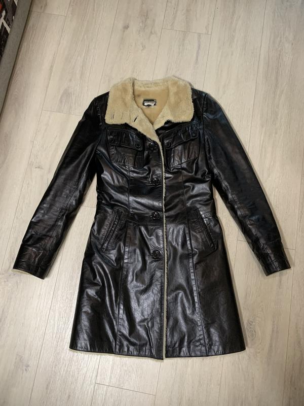 Шкіряна дублянка ( пулап) , на натуральному хутрі. На останньому фото видно , трошки пофарбоване хутро . Все інше в доброму стані. Рукав- 65. Довжина 90. Пог- 46. Пот- 40 Торг доречний