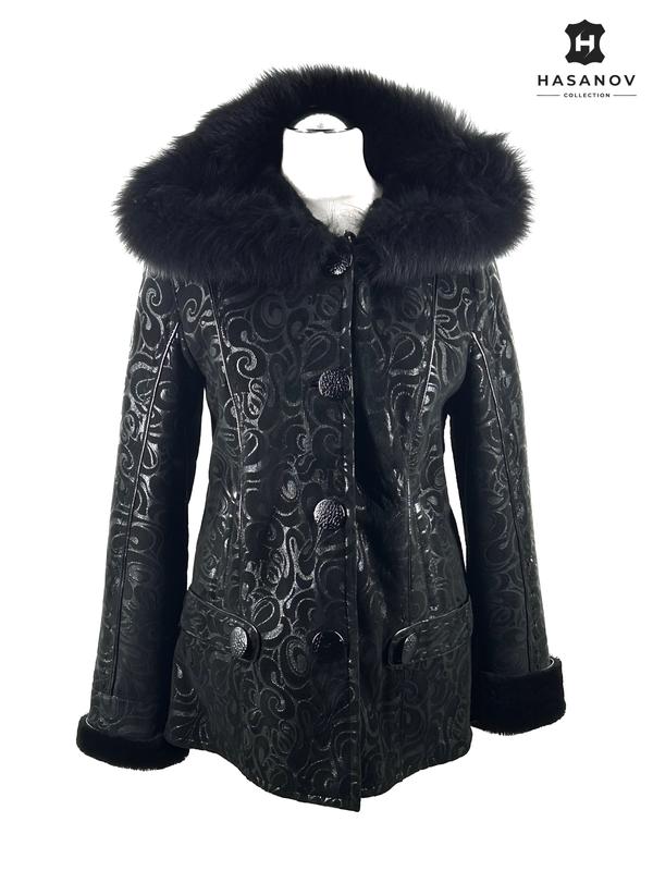 Изящно сбалансированная дамская дубленка с очаровательным капюшоном, выполнена из изысканной натуральной кожи, украшена утонченным лазерным орнаментом. Капюшон изысканно украшен мягким мехом чернобурки, а внутренний обшив выполнен из нежной овечьей шерсти, обеспечивая непревзойденный стиль и тепло♦️ 🪡Размер: М 💳Цена :8800 UAH