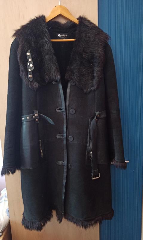 искусственная дубленка средней длины с вставками из натурального меха. теплая, но немножко тяжелая