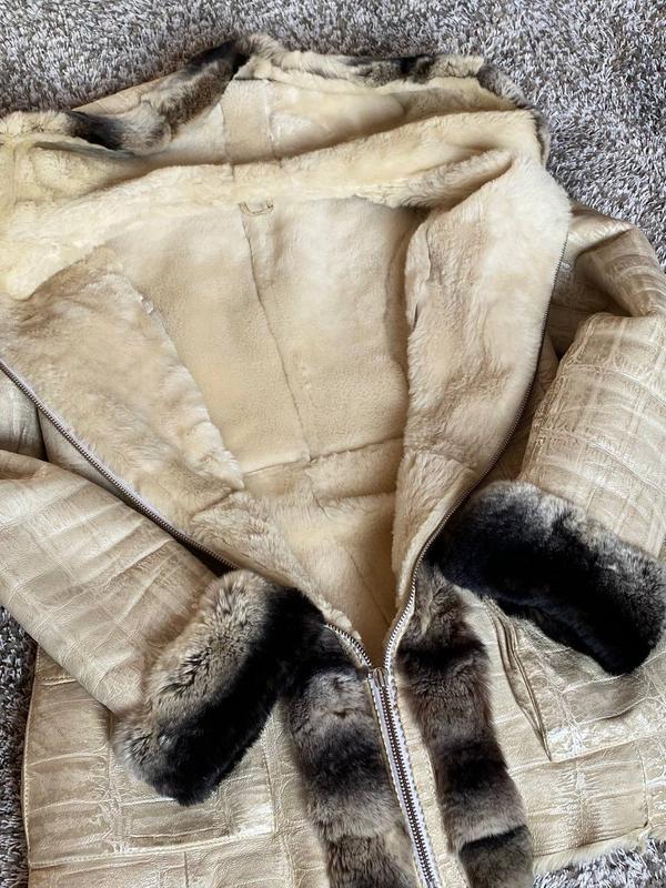 Натуральная дубленка, украшенная мехом шиншили Размер с
