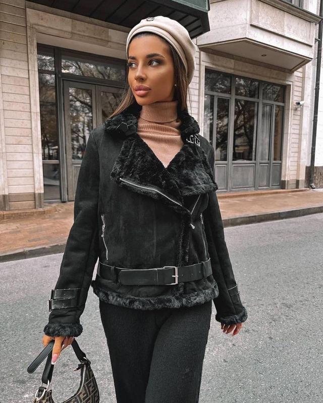 Дубленка авиатор AFTF BASIC Модель: 2141 Размеры: S, M, L Цена 2200грн Состав: 100% полиэстер, искусственный мех, замш Замеры: S Длина по спинке 60 см Длина рукава 60 см Объем груди 92 см Объем бедер 102 см M Длина по спинке 60 см Длина рукава 62 см Объем груди 96 см Объем бедер 106 см L Длина по спинке 60 см Длина рукава 63 см Объем груди 100 см Объем бедер 110 см
