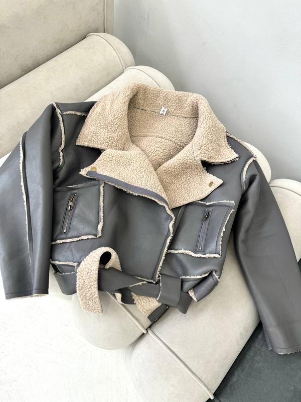 Новый цвет любимой модели 🥹🩶🩶🩶 В наличии в новом цвете Размеры: S M L Эко кожа и мех овчинки Люкс качество, темп режим до -10, пояс в Замеры: S: ог 61, рукав 69, длина 60 см, плечи 43 см M: ог 62, рукав от шеи 71, длина 61 см, плечи 44 см L: ог 63, рукав 72, длина 62, плечи 45 см