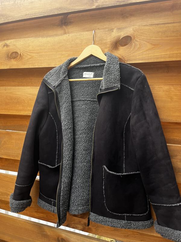 Дубленка, черного цвета, размер s/m, утеплитель: искусственный мех