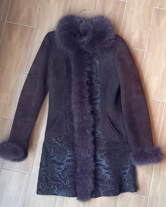 Дубленка натуральная Regatta (Япония). Коричневого цвета. Овчина стержена. Приталена. Украшена мехом песца и металлическими заклепками. Застегивается воздушными петлями на пуговицы. Имеет два врезных кармана. Длина по спинке - 83см Длина рукава - 63см. Подойдет на размер - xs, s. Воротник, рукава и перед украшены мехом песца. Кожа снизу и спереди обработана лазерной гравировкой