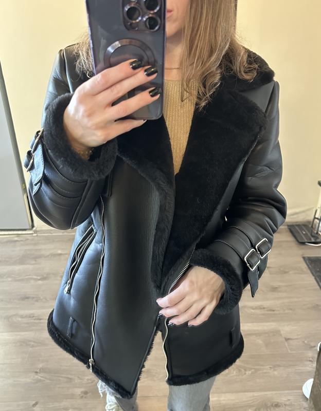 Дубленка из эко-кожи в длине 70см Температурный режим от -20 ° до 0 ° Размер S Новая! Надевала 1 раз, не подошел размер