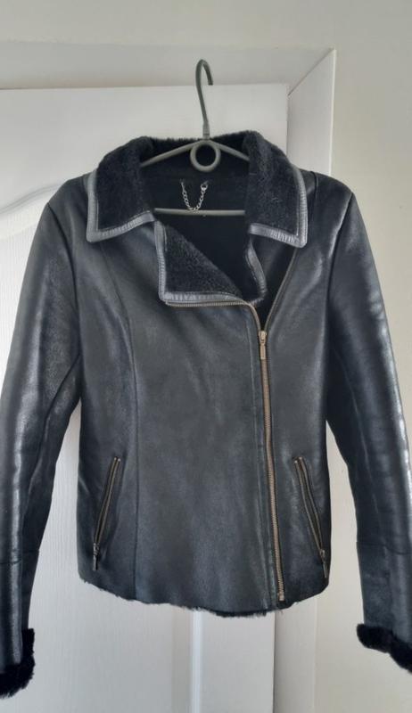 Продам натуральну дублянку. Розмір S. Всередині коротке хутро, поверхня з захистом не промокає. Без дефектів. Не блищить. Заміри: по плечах 39 см, пог 43 см, довжина по спині 57 см