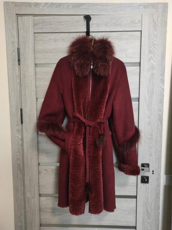 Женская дубленка. В отличном состоянии, благородного бордового цвета. ОЖЕ теплая. имеет карманы, пояс и капюшон. длина 100 см