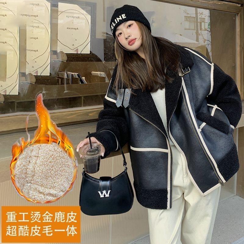 Женская куртка из овечьей шерсти, интегрированная с мехом, 2024, осень и зима, новый стиль, свободная куртка с бархатом [доставка на протяжении 10 рабочих дней]
