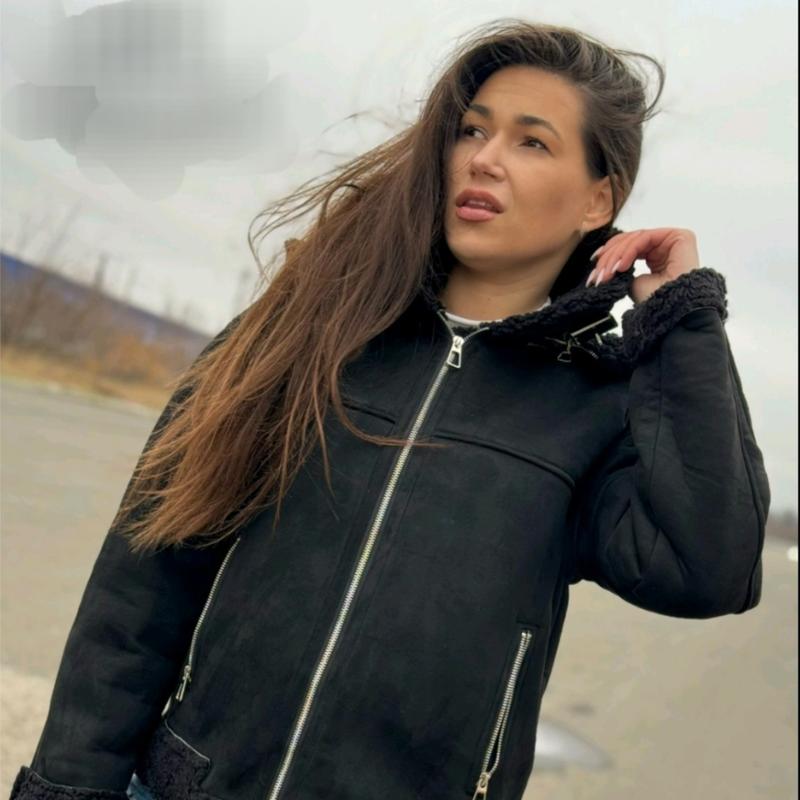 Дубленка из искусственной замши со съемным капишоном и мягким мехом внутри.