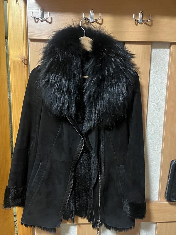 Натуральная дубленка размер S, мех песец,в середине натуральный мех козы.Зверху она типа замша, вывернутая кожа, очень мягкая и приятная.