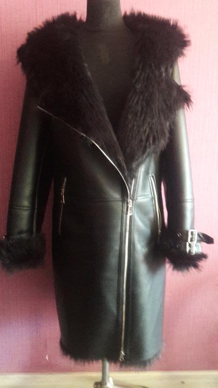 Дубленка новая без бирки( йоко кожа ). Теплая, легкая с капюшоном.
