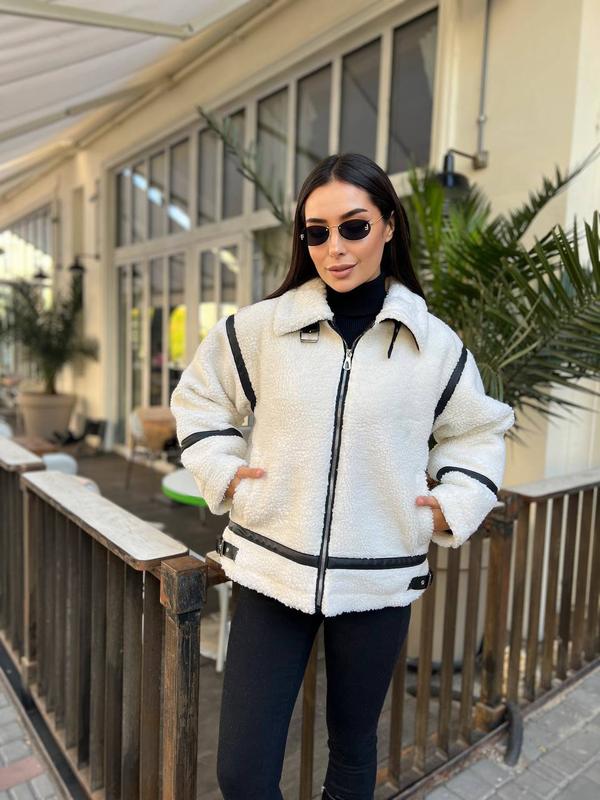 Дубленка арт. Click173 Это та самая дубленка, которую хотят абсолютно все! Размеры: 1(42-44); 2(46-48) Ткань: плотная эко мех, стеганая подкладка на утеплителе, эко кожа Цвет: молоко, графит