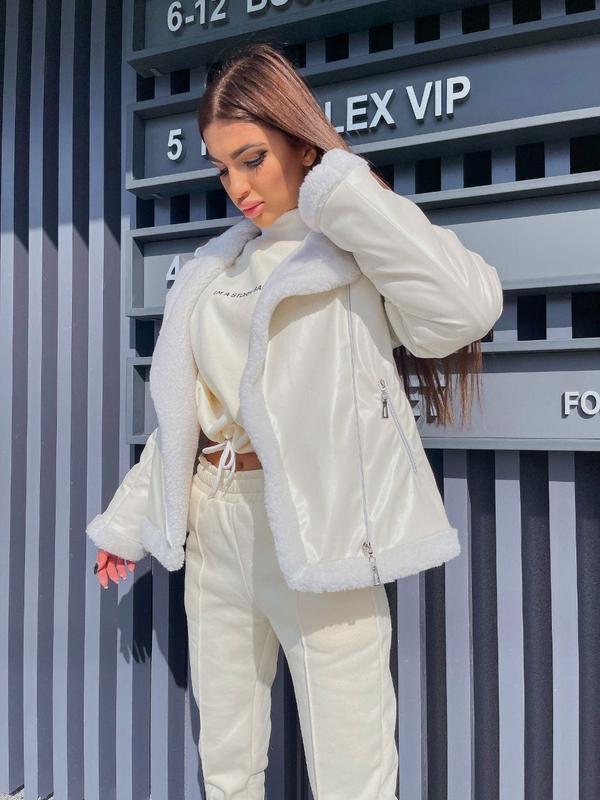 Дубленка Модель 30336 Цвет - белый Размер - 42-44 Ткань - эко-кожа, подкладка эко-мех Замеры Размер 42-44 Длина рукава от горловины 75 Длина изделия 62 ОГ 100