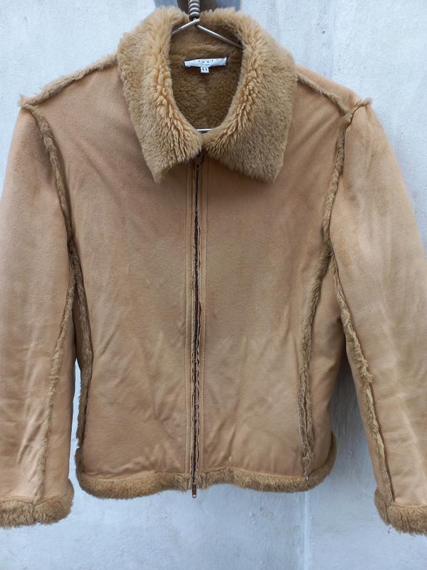 Искусственная дубленка на молнии с карманами, короткая. замеры по запросу. Цвет горчичный.