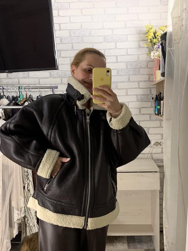 2150 Куртка от Pull & bear в новом состоянии! Интересная, стильная и теплая, выполнена по типу куртки авиатор. Размер L По груди 50, низу 53, рукав от воротника 72, длина 64 см