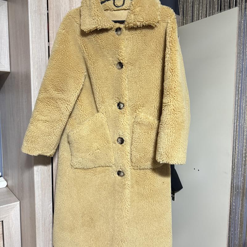 Очень красивая и теплая шубка,камера не передает цвет, приглубленную светлее, больше к желтому.Стан идеален.Купила за 100$ В настоящее время не подходит размер, крупной мне стала. Размер С Ог 51 (меряла снаружи) Длина 100 Рукав от горловины 65 см Производство Турция. Цена 1300 грн
