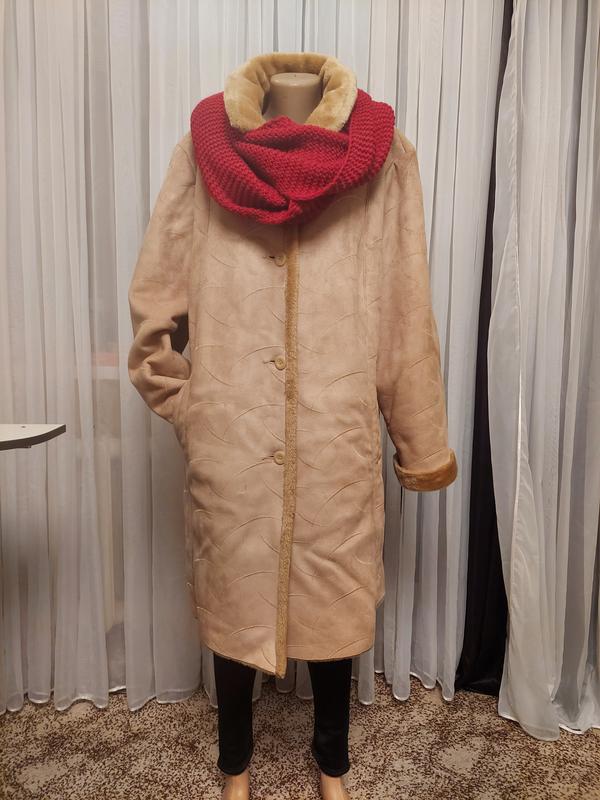 ДУБЛЯНКА ЛЕГКА , ТЕПЛА ТА ЗРУЧНА , ДЛЯ ПИШНОЇ ДАМИ , ДОВЖИНА 96 СМ , ДОВЖИНА РУКАВА 63 СМ , ОБЬЕМ ГРУДЕЙ65 СМ , ОБЬЕМ СТЕГОН 72 СМ .
