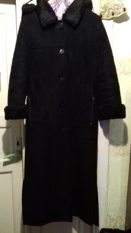 Длинная искусственная дубленка, очень теплая и удобная, не заношенная, не затертая, капюшон отстегивается, по бокам две кармашки, внизу по бокам небольшие распоришки. Подойдет на размер 44-46. Купила в прошлом году за 1300, поправилась, продаю чтобы неширялась. торг уместен.