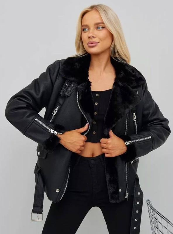 Дубленка-авиатор # 1176 (#908) Размеры: 42,44,46 Ткань: дубляж эко-кожа Цвет: черный Мех: белый, черный Фабричный Китай 🇨🇳 AFTF BASIC (s) пог-51см, рукав-62см (m) пог-53см, рукав-63см (l) пог-55см, рукав-64см Длина: 60см