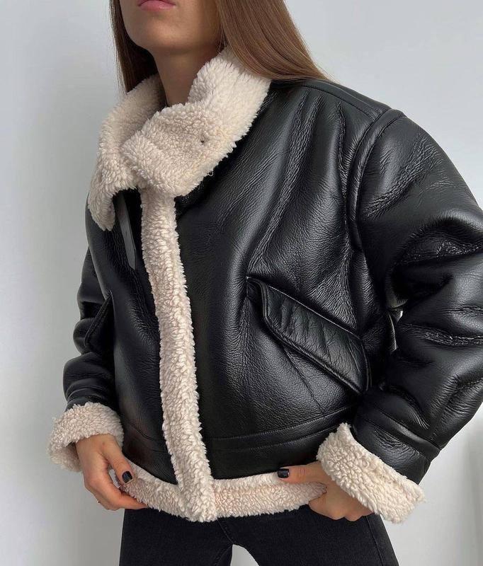 Очень классная дубленка оверсайз🖤Качественная и красивая. Производитель: Турция В размерах S, M, L S: пог 52, рукав 65, длина 51 М: ПОГ 55, рукав 67, длина 53 L: ПОГ 62, рукав 69, длина 55см.