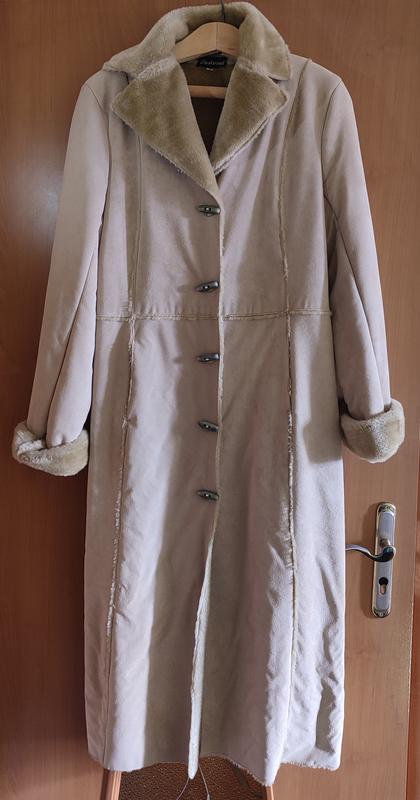 Жіночка дублянка, в хорошому стані. Заміри: Талія (півобхват) - 45 см Ширина. в плечах - 44 см Ширина низу - 61 см Довжина виробу - 125 см Довжина рукава - 64 см.